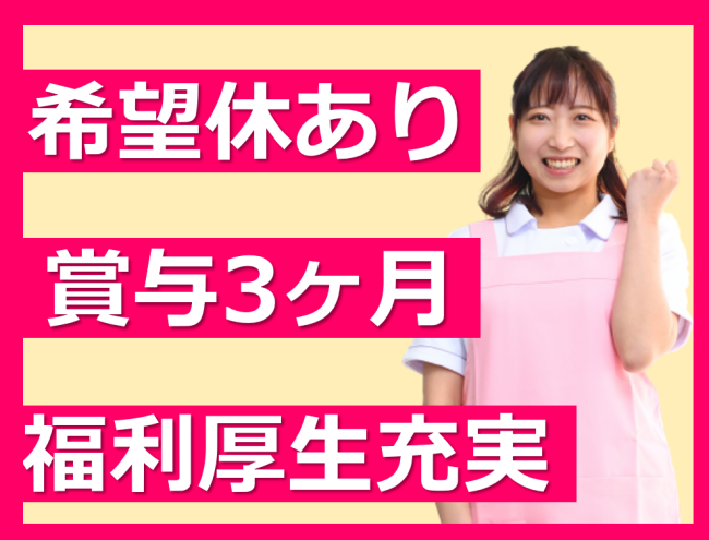 経験者歓迎/ブランクOK/月8~10日休み/希望休OK/賞与3ヶ月/福利厚生充実/残業ほぼなし