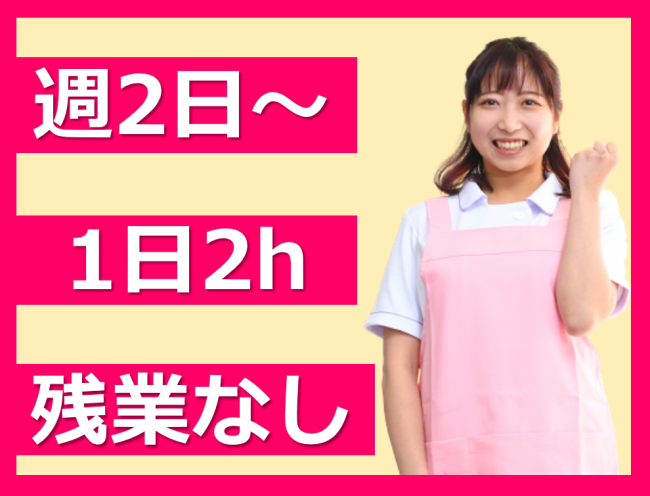 | 勤務時間 | 13:30~15:30 ※休憩時間:なし※就業時間が6時間を超えた場合、休憩時間は法定付与となります ※時間外労働時間:なし ※週所定労働日数:週2日~週4日 |