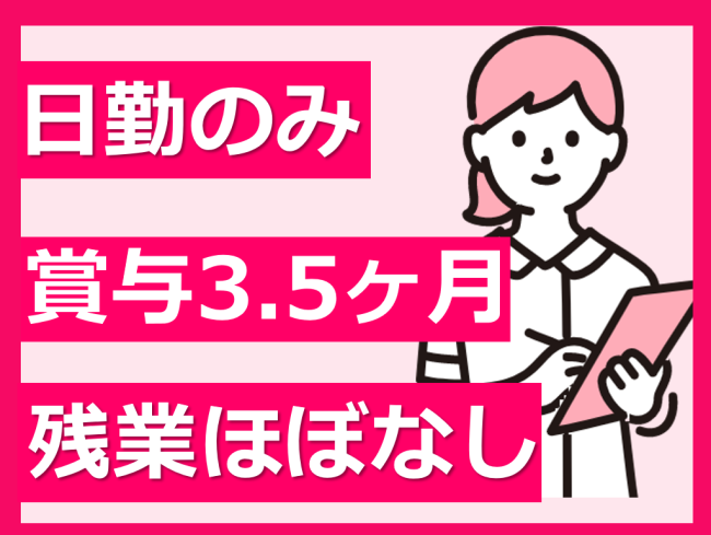 ・残業ほぼなし!日勤のみ(夜勤なし)!