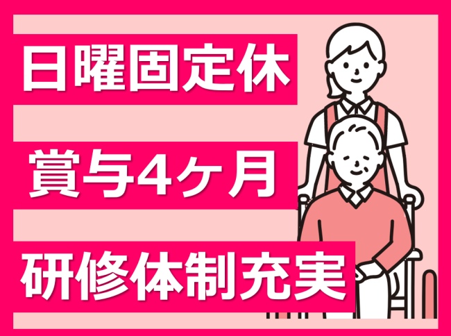 介護福祉士歓迎/経験者歓迎/残業ほぼなし/日曜固定休/賞与4ヶ月/研修体制充実