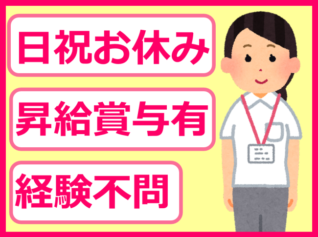 日祝お休み/昇給あり/賞与あり/残業少なめ/資格があれば経験は不問!車通勤OK!
