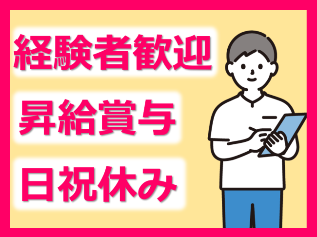| 休日・休暇 | ・日、祝日、その他 ・勤務表による ・年間休日115日 ・6か月経過後の年次有給休暇10日 |