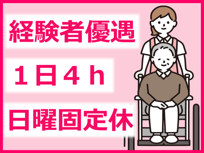 介護業務経験者優遇/介護福祉士歓迎/1日4時間のお仕事/日曜休/昇給有/勤務日数・時間相談OK