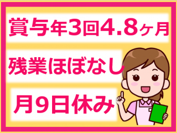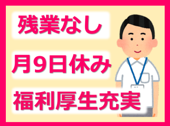 ・残業なし!日勤のみ(夜勤なし)!月9日(2月は8日)休みあり!