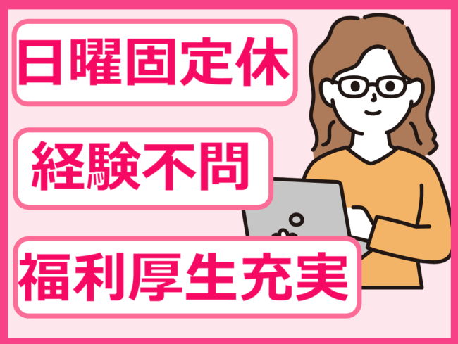 日曜固定休/完全週休2日制/福利厚生充実/残業少なめ/離職率が低く、安定して長く働ける職場環境