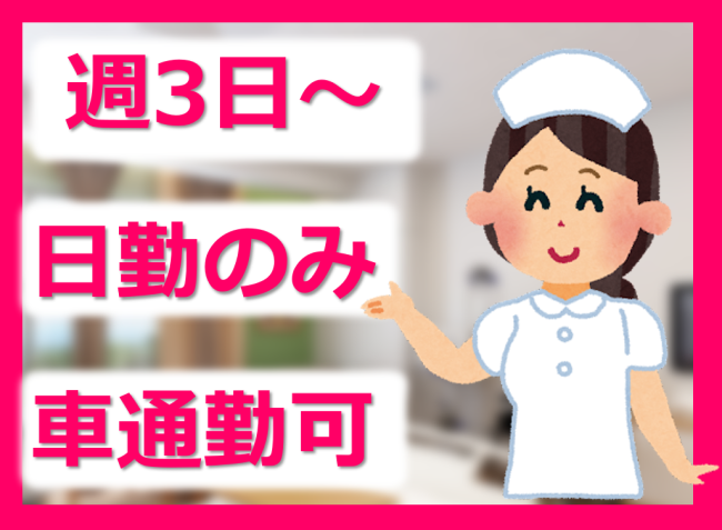 | 求める人材 | 〇学歴 ・不問 〇必要な経験・スキル ・病院・施設における勤務経験:必須 ・PCスキル:記録はシステムを使用しています。丁寧に指導しますので、電子カルテ未経験の方でもご心配なく。 〇必要な免許・資格 ・看護師、准看護師:いずれか必須 ・普通自動車運転免許:あれば尚可(AT限定可) |