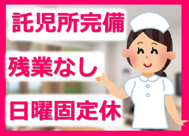 託児所あり(0~2歳)!子育て中でも働きやすい環境/残業なし/日曜休/月8~10日休み/手当充実