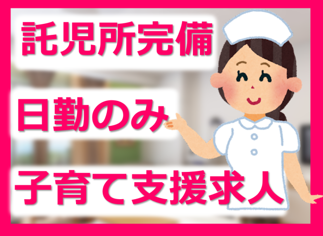 託児所完備(~2歳)空きがあれば一時預かりも可/残業なし/月8~10日休/子供関連の休み相談OK