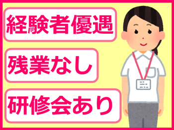 経験者歓迎/残業かなり少なめ/賞与4.5カ月/手当充実/福利厚生充実/働きやすい職場環境です