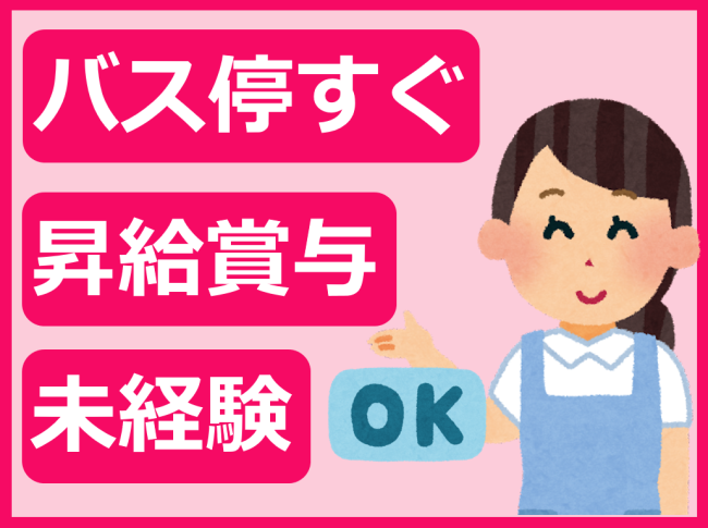 有資格者・経験者歓迎/残業ほぼなし/月8~10日休み/賞与3.5カ月/最寄りのバス停から徒歩1分