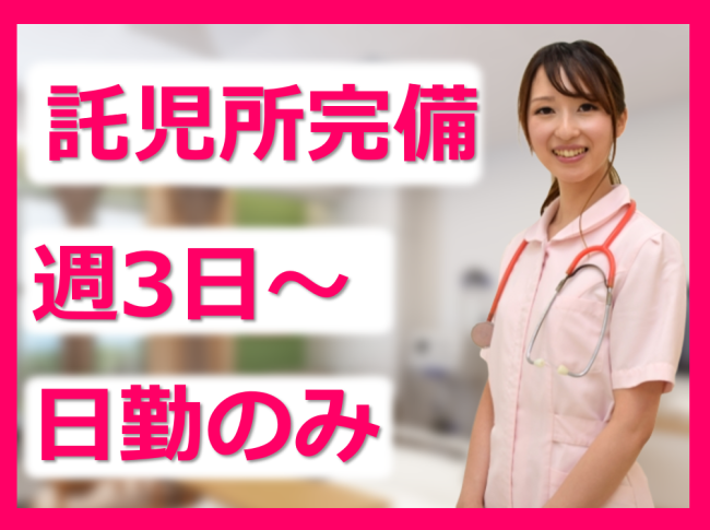託児所完備/土曜日勤務できる方歓迎/経験者優遇/昇給あり/勤務日数・時間相談OK/駅から徒歩3分