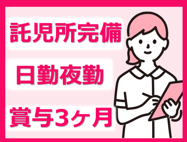 託児所完備!365日24時間対応/経験者優遇/賞与3カ月/駅チカ3分!バス停もすぐ目の前で便利!