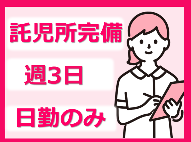 託児所完備/未経験OK/~14時まで/日曜固定休/昇給あり/盆・年末年始休み/バス停から徒歩2分