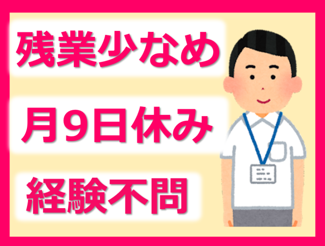 ・残業月平均5時間とかなり少なめ!月9日公休(2月のみ8日)!