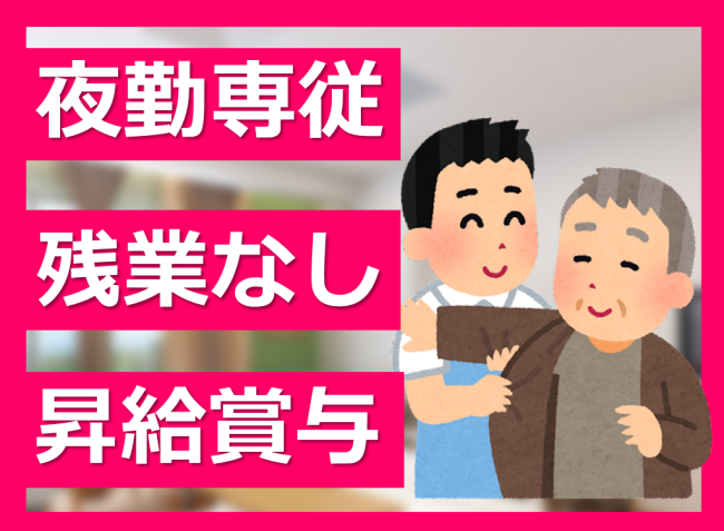 介護施設での夜勤経験者歓迎/残業なし/月9日休み/未経験の方は日勤からのスタートなので安心!