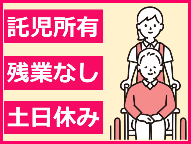 託児所完備(~2歳)/介護福祉士や高齢者施設等での勤務経験者歓迎/昇給あり/土日固定休/見学OK