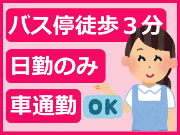 | アクセス | 〇最寄りのバス停 ・「地区センターバス停」から徒歩2分 ※交通費支給! ※車通勤OK!バイク通勤OK!(無料駐車場あり) |
