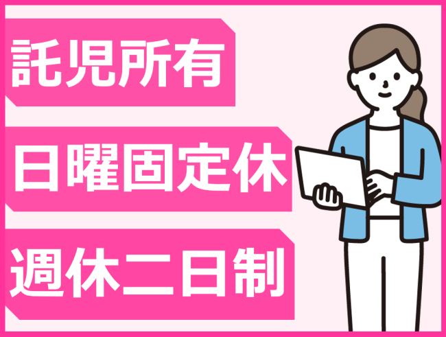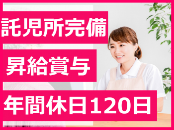 託児所完備!子育て世代を応援/日曜固定休/賞与3.3カ月/完全週休2日制/医療費補助あり