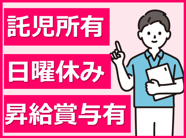 託児所完備!仕事と子育ての両立をバックアップします/日曜固定休/賞与3.3カ月/完全週休2日制