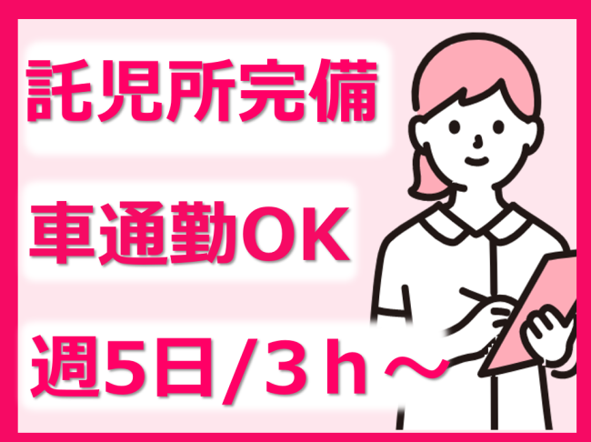 週5日、1日3時間~/託児所あり/昇給賞与あり/扶養内勤務OK/勤務・休憩時間、休日相談OK
