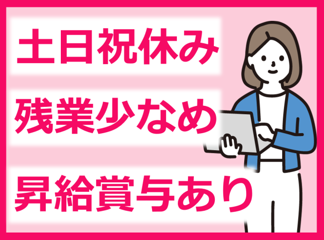 残業かなり少なめ/土日祝固定休!週末はしっかりリフレッシュでます/昇給賞与あり/駅から徒歩5分