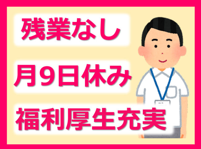 | 休日・休暇 | ・その他 ・シフトにより月9日 ・年間休日112日 ・6か月経過後の年次有給休暇10日 |