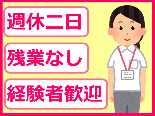 | 勤務時間 | 8:30~17:30 ※休憩時間:60分 ※時間外労働時間:なし ※年間休日数:107日 |