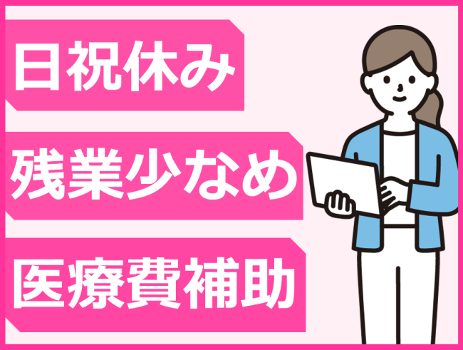 残業かなり少なめ!安心して働ける環境/賞与5カ月/日祝固定休/医療費補助あり/バス停から徒歩2分
