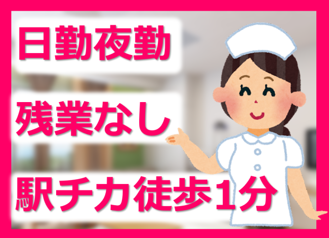 看護経験ある方歓迎/残業なし/勤務シフト等色々相談OK/チームワークがよい環境/駅から徒歩1分