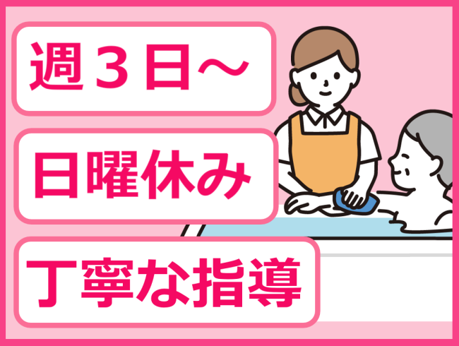 ・残業なし!日勤のみ(夜勤なし)!日曜固定休!