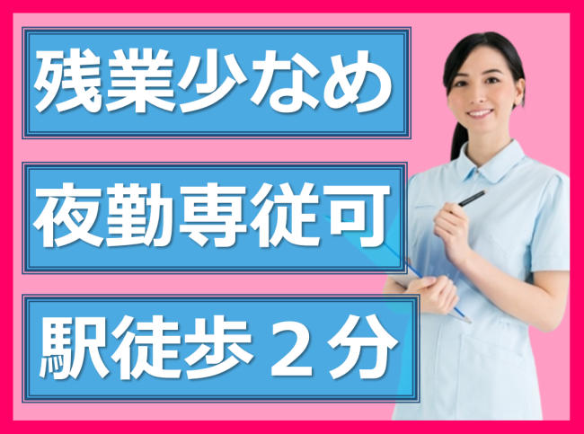 年間休日120日/残業少なめ/月10日休/夜勤専従もOK/保育園費用半額助成あり/駅から徒歩2分