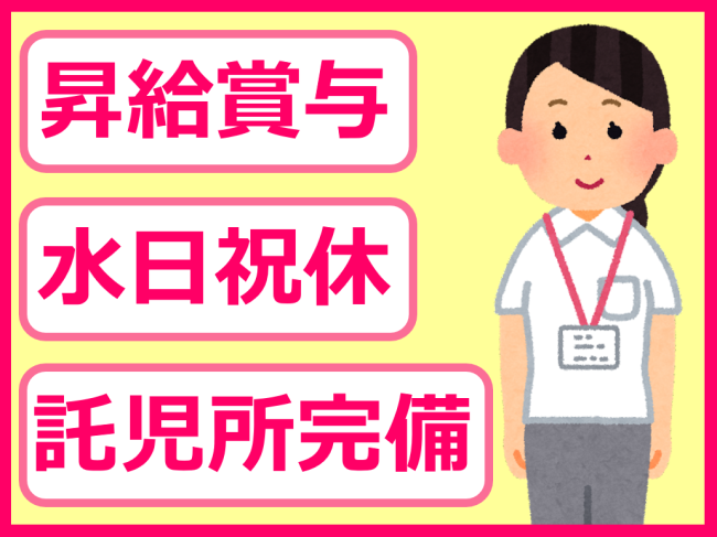 託児所完備!子育て世代をしっかりサポート/年間休日120日/残業ほぼなし/水日祝休み/賞与4カ月