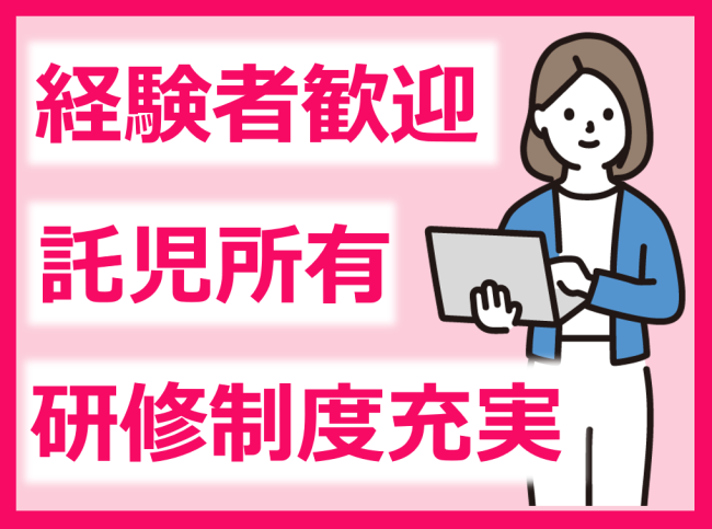 託児所完備!子育て中でも安心/経験者歓迎/月9日休/日祝固定休/賞与3.5カ月/希望休月2日あり