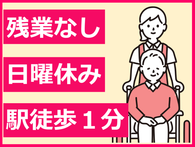 介護福祉士募集/駅から徒歩1分/残業なし/日曜休/完全週休2日制/気軽に相談できる雰囲気の職場!