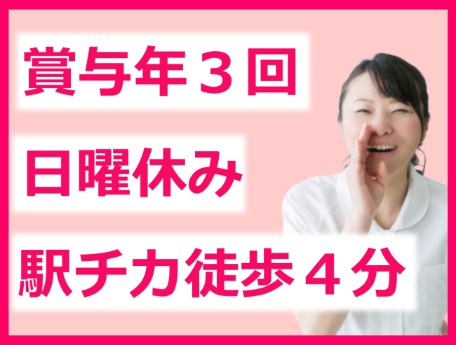 胃ろう、酸素管理、喀痰吸引できる方/日曜固定休/土祝勤務時給UP/賞与年3回/駅チカ徒歩4分