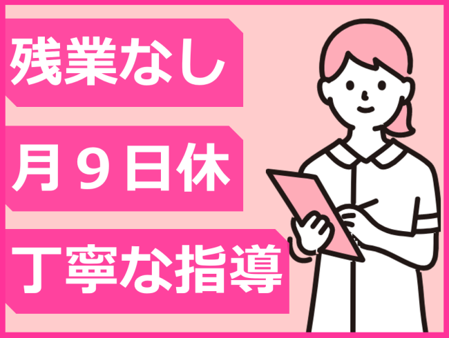 残業なし!プライベート充実/月9日休/賞与3カ月/子連れ出勤OK/ブランクOK/丁寧な指導あり