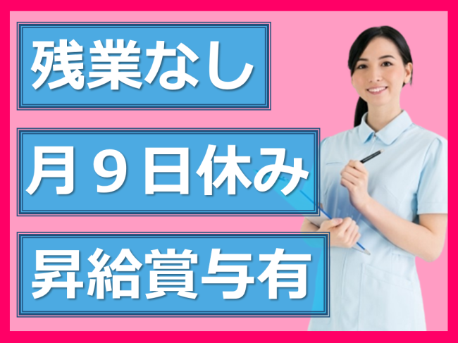 ・残業なし!日勤のみ(夜勤なし)!月9日休みあり!