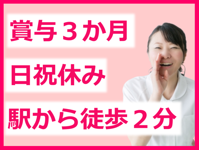 駅から徒歩2分!通勤にも便利な立地/残業ほぼなし/日祝固定休/賞与3カ月/夏季・年末年始休暇あり