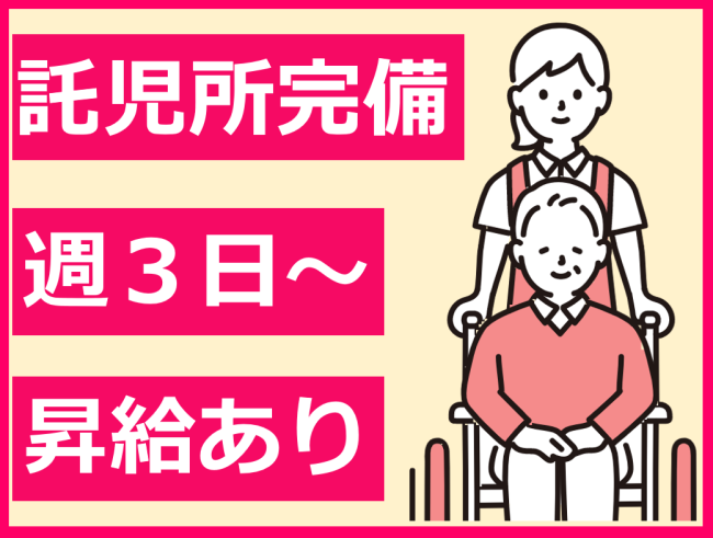週3日~、1日4時間~/託児所完備/昇給あり/勤務日数・時間相談可/子連れ出勤OK/社員登用あり