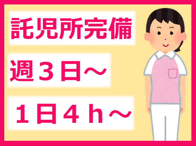 週3日~、1日4時間~!自分のペースで仕事を始められます/託児所完備/昇給有/勤務時間等相談OK