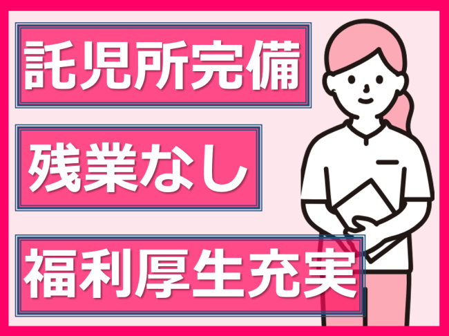 託児所完備/残業なし/日祝固定休/土曜午後休み/賞与3.8カ月/勤務時間相談OK/福利厚生充実