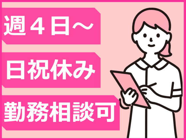 週4日~、1日3時間~/注射・採血得意な方歓迎/日祝休/扶養内勤務OK/勤務時間や曜日等相談OK