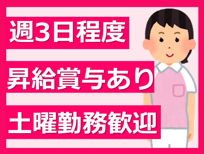 週3日、1日4時間~/経験必須/土曜勤務できる方/木日祝休/昇給賞与あり/勤務日数・時間相談OK