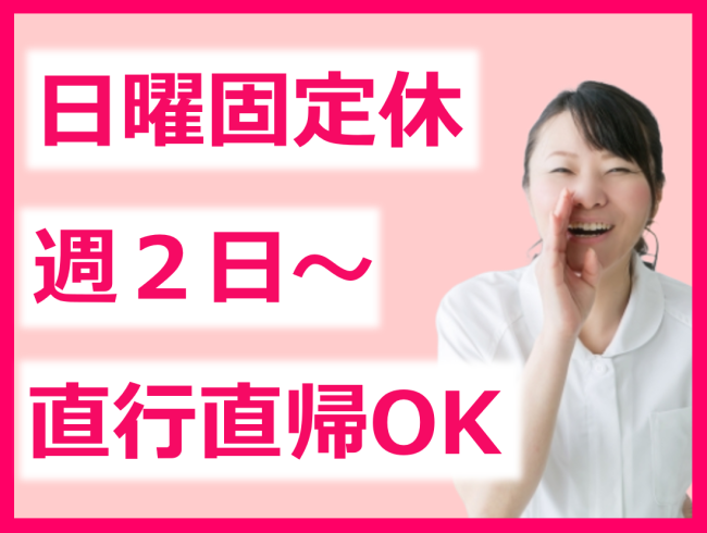 週2日~/日曜休/昇給有/直行直帰OK/年末年始・盆休み/勤務時間相談OK/固定の曜日で働けます