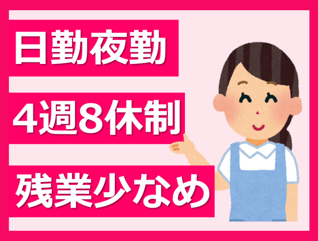 ・残業かなり少なめ!日勤夜勤両方で稼げるお仕事!