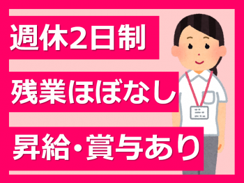 残業かなり少なめ/日曜固定休/賞与3カ月/完全週休2日制/最寄りのバス停から徒歩3分で通勤も便利