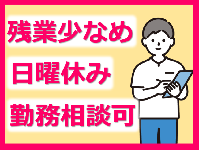 ・残業少なめ!日勤のみ(夜勤なし)!