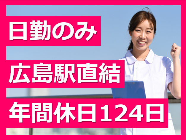 経験者優遇/広島駅直結徒歩2分/年間休日124日/木日祝固定休/昇給賞与あり/盆・年末年始休み