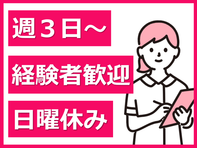 週3日以上の勤務/1年以上の看護経験者歓迎/日曜固定休/勤務日数・時間相談OK