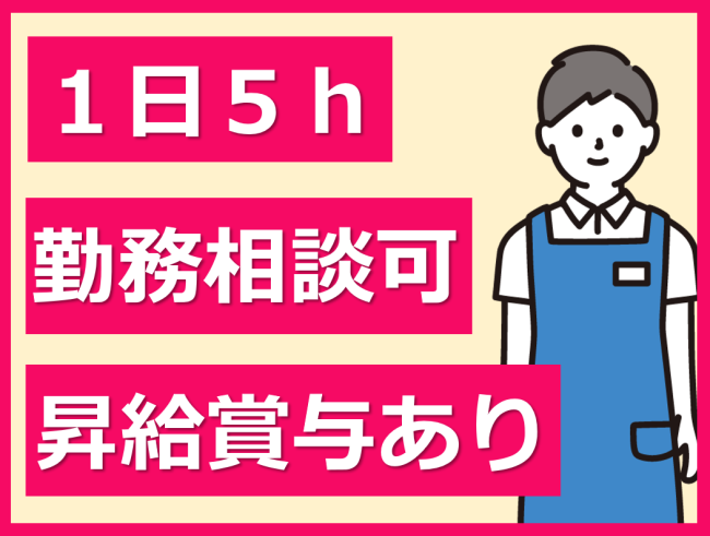 | 勤務時間 | 9:00~14:00 ※休憩時間:60分 ※時間外労働時間:なし ※週所定労働日数:週3日程度 |